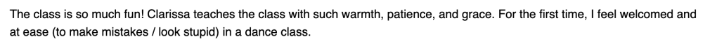 Clarissa K. Ko is a spirited dance educator, with 10+ years of experience. She encourages supportive and reflective dance spaces for all ages. She grew up training with RAD and CSTD ballet syllabus and modern/contemporary technique. Her teaching is highly influenced from her mentor in somatic principles as a young dancer by Ms. Juna Koo and later as a teacher and professional dancer by, master teacher, Ms. Augusta Moore. In addition to teaching somatic-based ballet and contemporary technique at dance studios she has also designed arts integrated curriculum in K-8 schools.